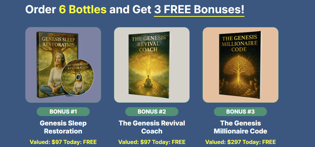 Crafted in an FDA-registered, GMP-certified facility, Genesis Revival stands out as a clean, non-GMO, and filler-free formula rooted in ancient wellness traditions. Users turn to it for deeper rest, sharper focus, better mood, and a renewed sense of energy. With consistent daily use, it offers a natural path to mental clarity and whole-body rejuvenation.
